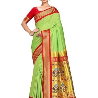 Varkala Silk Sarees Women’s Paithani Soft Silk Kadiyal Maharani Saree With Blouse Piece
